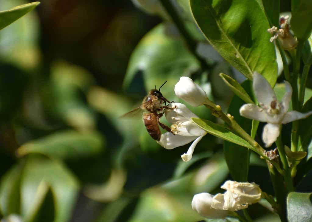Bee on a calamansi blossom (Image by Queven from Pixabay)